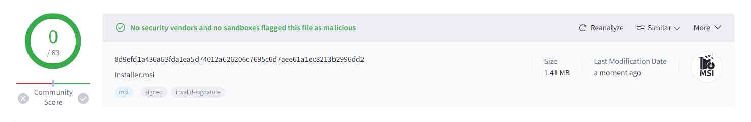 ومع ذلك اختبرت البوتنت وجميع مكافحات الفيروسات بمعرف Hash: