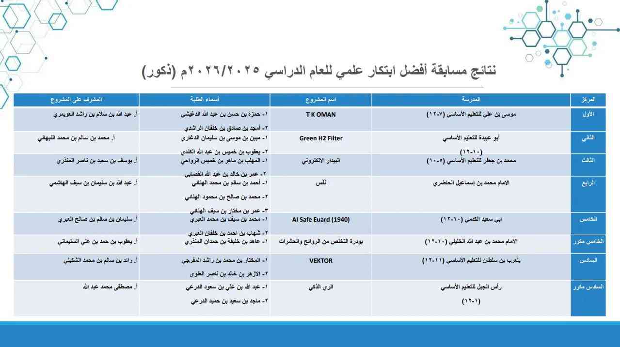 بعون من الله سبحانه وتعالى وتوفيقه حصلت شركتنا آفاق الهيدروجين المرن على المركز الثاني في مسابقة افضل ابتكار علمي على مستوى محافظة الداخليه والذي يعد إنجاز ضمن مسيرة مليئة بالتجديد والازدهار والشغف ومما يعكس الجهود البناءة المبذولة للمشروع وما يتبعه من اهتمام