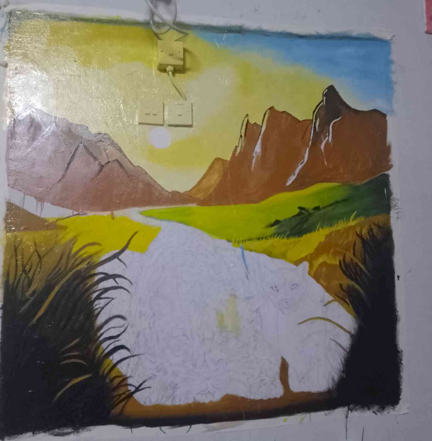 Dr. Awatif Alghafri ,Oman Arts Committee ما شاء الله ..إبداااع..هذا النوع من اللوحات تسمى جدارية فنية لأخذها مساحة كبيرة في الرسم 😊