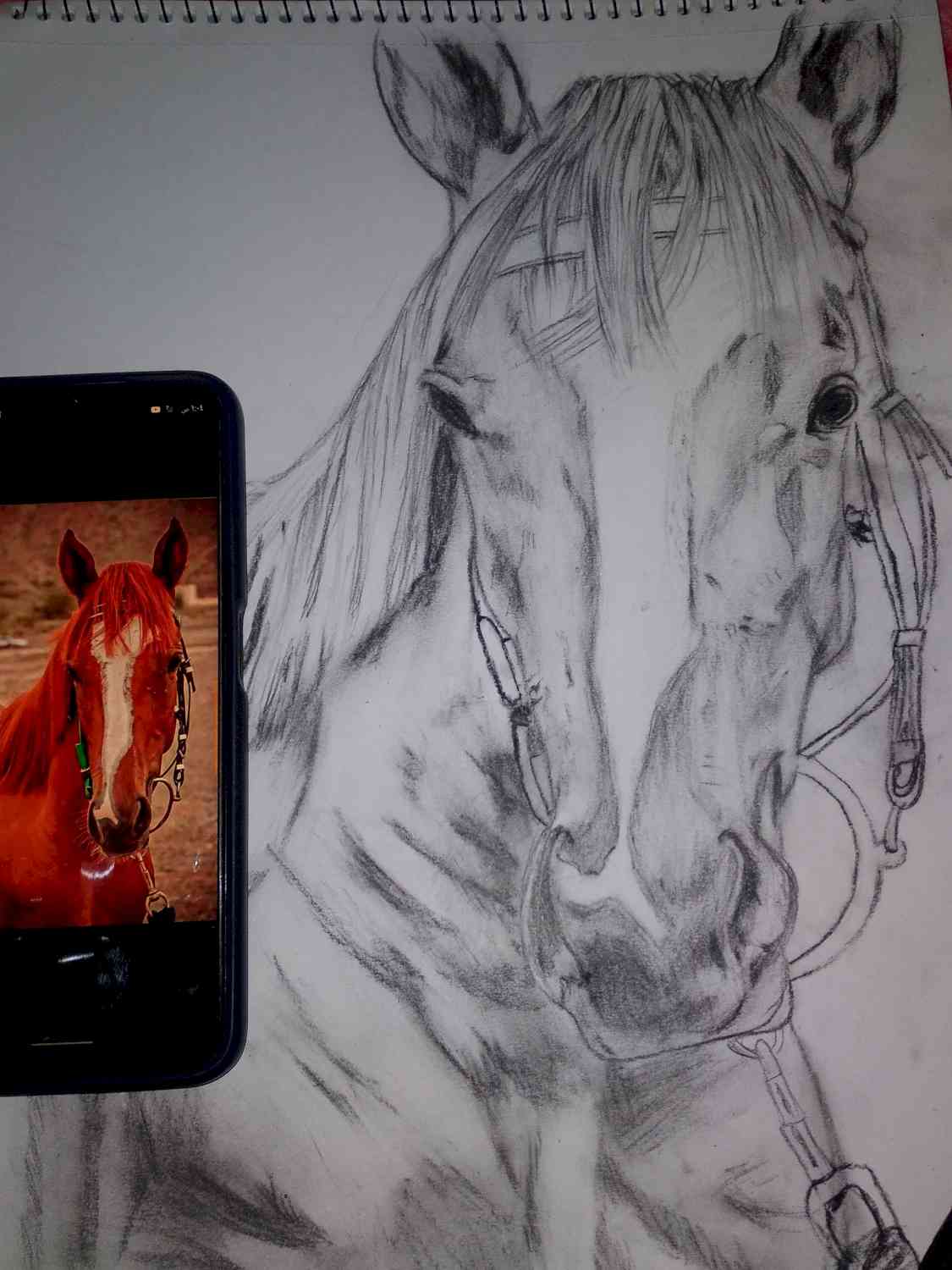 غصن المطري رسمه ب رصاص والفحم. خيل