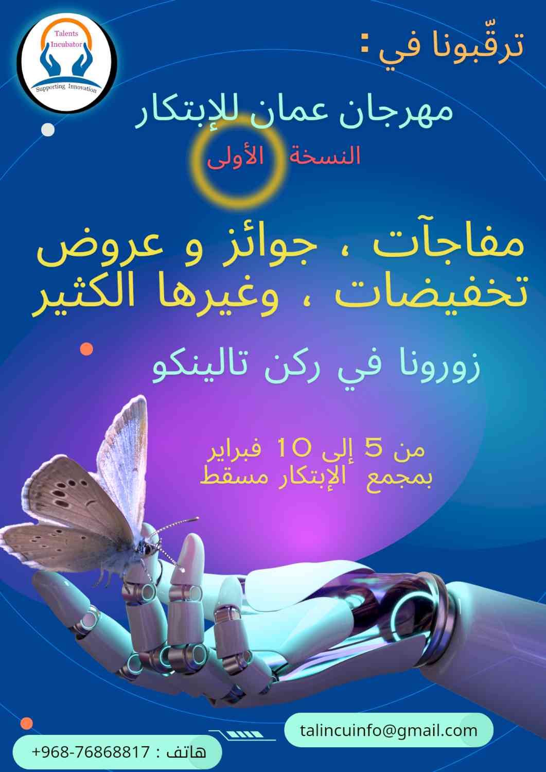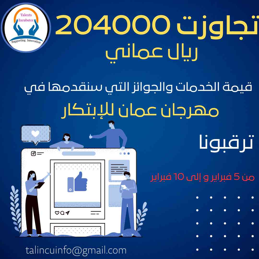 الشركة الطلابية الحاصلة على عرض إحتضان من تالينكو العالمي للمواهب والإبتكارات خلال مشاركتها في المهرجان العلمي الزراعي الرابع عشر ( مداد ) بجامعة السلطان قابوس