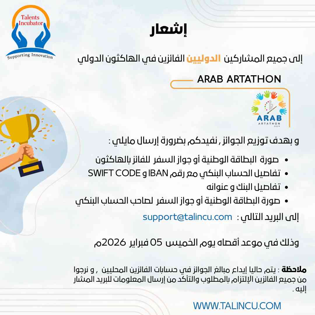 نبارك للمكرمين من منتسبي تالينكو العالمي للمواهب والإبتكارات . قائمة المكرمين في الرابط التالي : https://heyzine.com/flip-book/a1733cd1c5.html?fbclid=PAdGRzdgOec4ZleHRuA2FlbQIxMQBzcnRjBmFwcF9pZA81NjcwNjczNDMzNTI0MjcAAacU89LcbpEgzNg1ZKQqGBRF0-6DnLqKyi3tm1IbTWmlBpZV6rLUdyxKigkAWQ_aem_G3SJUrayc03zqFoB0C2D5g