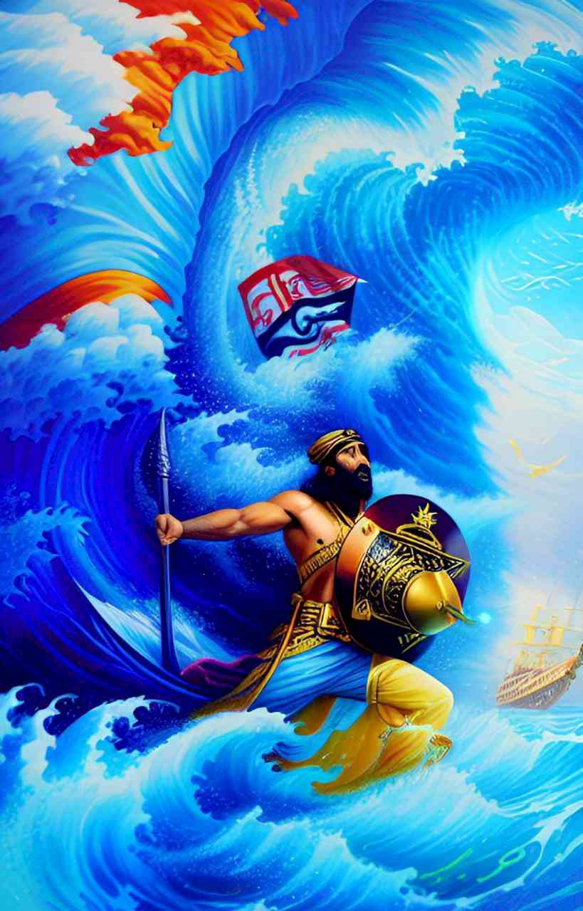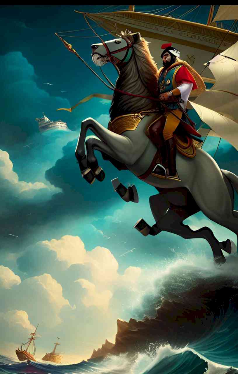 من أسطورة اسد البحار احمد بن ماجد من واقع ما كتب عن هذا الرجل وما قيل عنه من معاصرية وما رسخ فى ذاكرة الثقافة العمانية العلم اجمع على خدمات الأسطورة احمد بن ماجد فى اكتشاف طريق الهند البحرى والمعدات التى صنعها للإبحار فى تعالى البحار مانحتاجه كعرب أن نعيد للذاكرة إسهامات علمائنا فى تاريخ البشرية كل لوحات اسد البحار مع الذكاء الاصطناعي جاءت نتيجة للوصف الدقيق للرجل وقوتة وسخصيتة وقدرتة على التحمل بالإضافة للوحات المساعدة التى استلهم الذكاء الاصطناعي لوحات الوصف